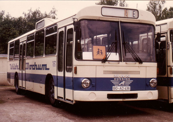 | Bei der Firma Wilde überlebte bis Anfang der 1990er Jahre einer der raren MAN-Büssing SL 195. Und auch unter den SL 195 war dieser wie alle für Berlin gelieferten Busse dieses Typs etwas Besonderes. Regulär erhältlich war der Typ Büssing BS 110 SL bzw. MAN-Büssing SL 195 wie er ab 1972 hieß entweder mit dem Fünfzylinder-Dieselmotor U 10 D5 oder dem großen Sechszylinder U 11 D. Die Motorleistung betrug 176 PS oder 192 PS je nach Kundenwunsch bei dem "kleinen" Motor und 185 PS oder 195 PS bei der 11-Liter Maschine. Berlin bekam jedoch eine Extrawurst: Altbrauchbare Motoren aus abgestellten D2U-Doppeldeckern bekamen ein zweites Leben geschenkt. Es handelte sich dabei um Sechszylinder-Motoren vom Typ U 10 (ohne D und 5!) mit 150 PS. In Berlin hörte dieser Bus auf die Betriebsnummer 2931 und die Legende sagt, wenn die Frau vom Chef nicht interveniert hätte, hätte dieser Bus sogar noch die VRR-"StadtLinie" Lackierung bekommen... | ||