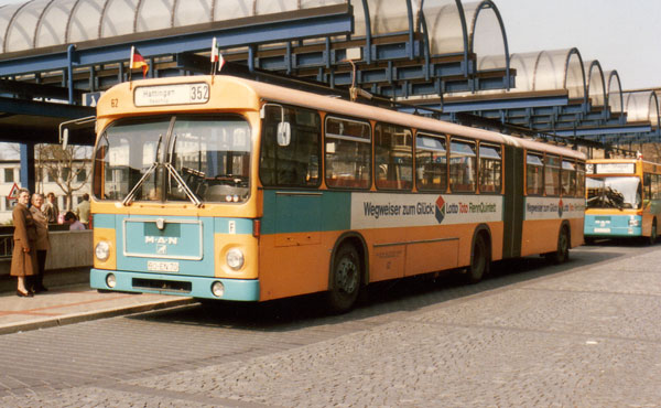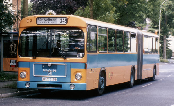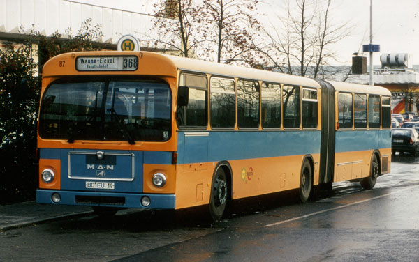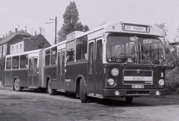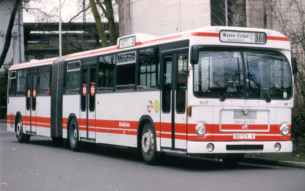 | Von 1970 bis 1984 kaufte die Bogestra insgesamt 94 neue Gelenkbusse der ersten Standardbusgeneration, die letzten Exemplare waren bis zum Jahre 1999 im Einsatz. | ||