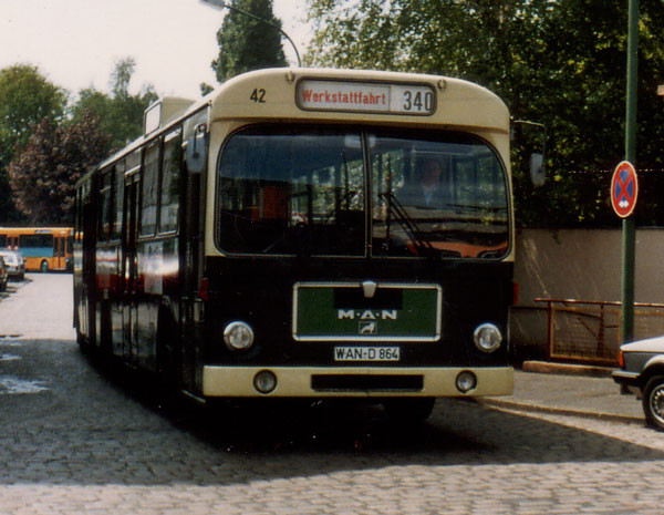 | Im Jahr 1972 stellte MAN seine Typenbezeichnungen um und aus dem 890 SG wurde fortan der SG 192. Diesem Typ entsprachen die vier im Juli 1972 angeschafften und in Witten zugelassenen Busse, die zwischen 1983 und 1984 ausgemustert wurden. | ||