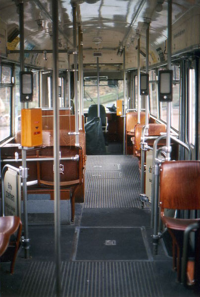 Innenraum des Tw 282: Mit diesen Holzsitzen waren die Tw 261 bis 298 ausgestattet. Fahrkomfort pur bis zum Jahre 1994