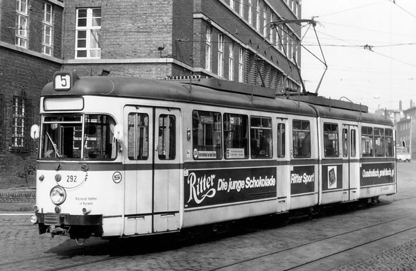 Tw 292 im Zustand als Einmannwagen zu Beginn der 1970er Jahre vor der Bogestra Hauptverwaltung