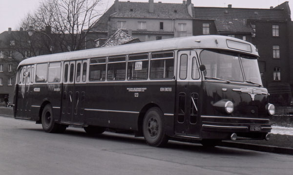 | Es gab wohl kaum eine westdeutsche Stadt in der unmittelbaren Nachkriegszeit, in die nicht ein paar dieser Büssing 5000 T mit Ludewig-Aufbau geliefert wurden. Schließlich waren Krauss-Maffei in München und die Kombination Büssing/Ludewig mit die ersten Firmen, die Omnibusse liefern konnten! | ||