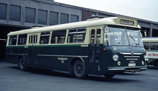 Im Jahr 1960 begann bei der Bogestra die Beschaffung von "Einmannbussen" in größerem Stil. Wurden von 1960 bis 1961 30 Wagen des Büssing Typs 13 RU7H gekauft, die die Wagennummern 200 bis 229 erhielten, folgten 1962 noch mal 7 Büssing Senator 13 in der hier gezeigten zweitürigen Ausführung mit den Wagennummern 230 bis 236. Die Busse 200 bis 225 wurden auf BO, die Busse 226 bis 229 auf WAN und die Senatoren auf GE angemeldet. Die Ausmusterung erfolgte zwischen 1972 und 1974, die Busse 235 und 236 kamen 1972 unter den Nummern 650 und 651 noch zu Fahrschulehren. Die endgültige Abstellung kam 1975. |