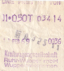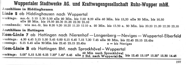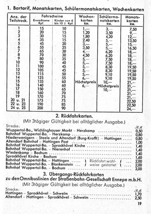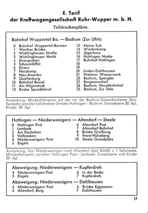 | Aus: "Fahrgeldtarif der Wuppertaler Bahnen AG und der Kraftwagengesellschaft Ruhr-Wupper m.b.H.", Ausgabe 1. Juli 1941 |