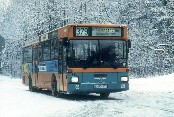 | Wenn im Ruhrgebiet der Schnee nur als Matsch nieder kommt, auf den Höhen südlich der Ruhr bleibt er liegen! Hier quert KOM 8604 auf den Spuren der alten Linie 33 das Vormholz in Herbede. |